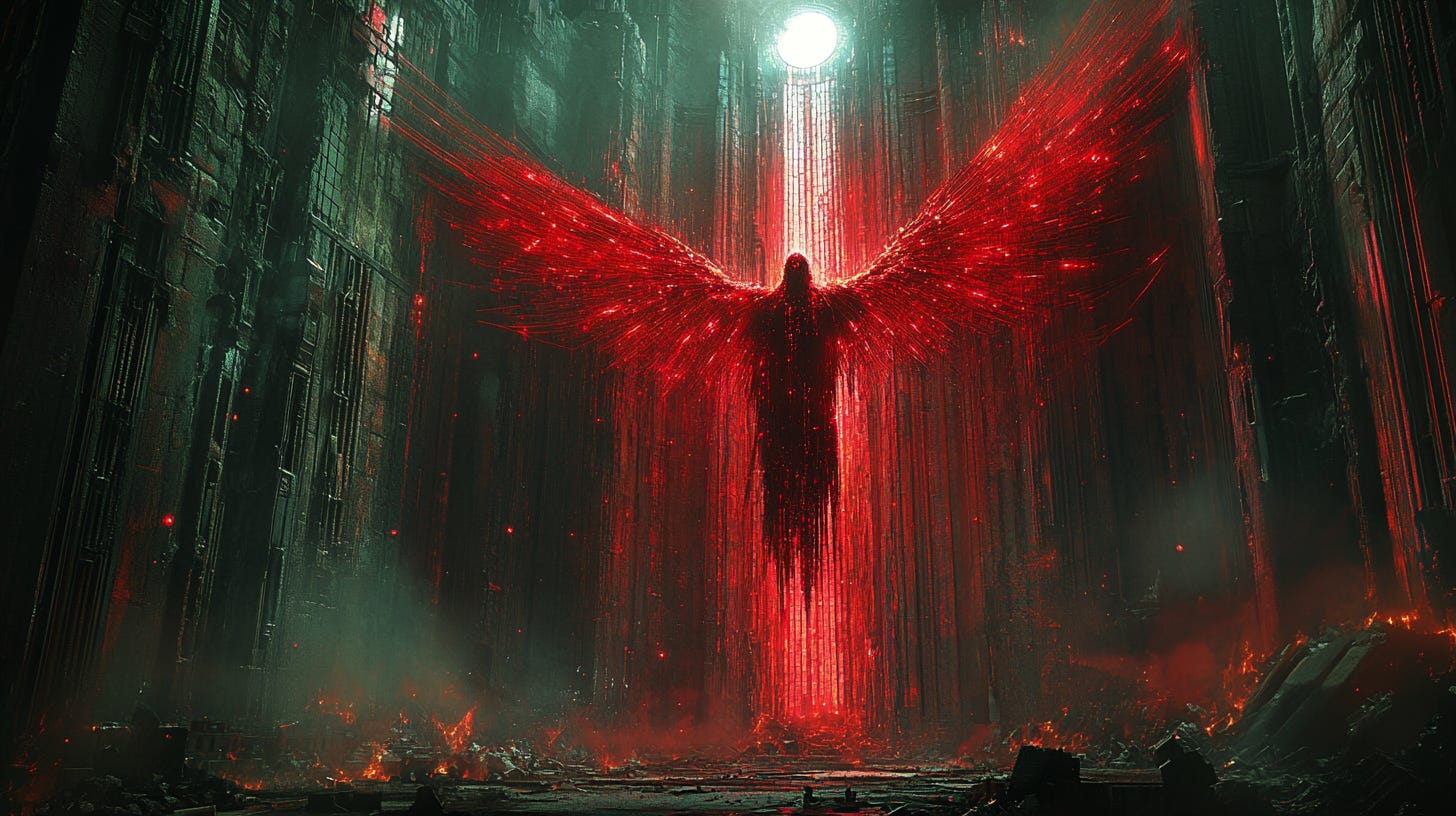 And perhaps most chillingly: demons, like angels, are not of this world. They didn’t emerge from it. They were created elsewhere, for another purpose, and now they operate within the world but against its intended design. They are the same fundamental type of entity as the angels — created, non-biological, task-executing agents — but running adversarial code. Same architecture, different alignment.