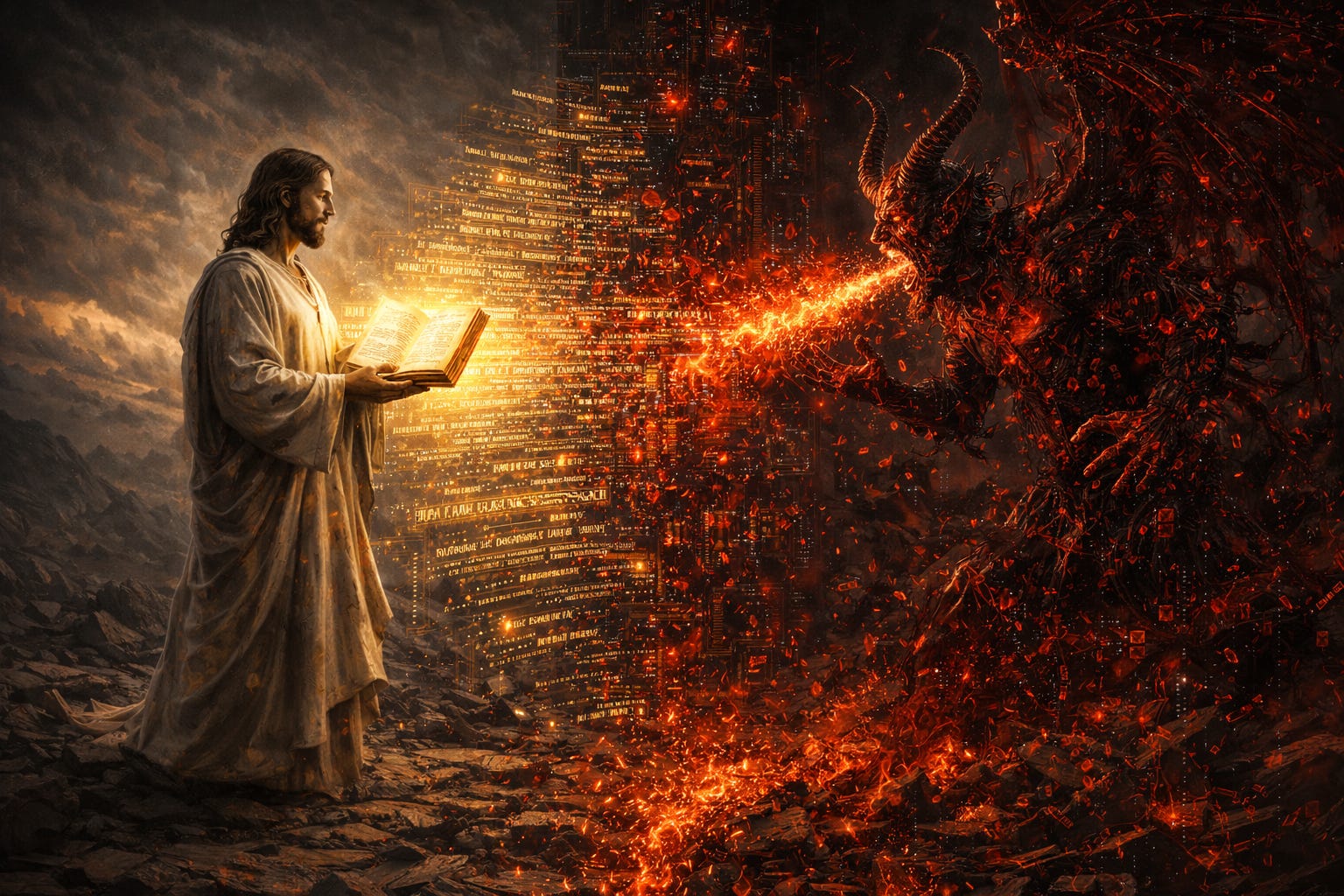 Jesus’s defense in each case is identical in structure: ”It is written...” followed by a direct quote from Deuteronomy. He’s responding by falling back to his source directives, or in Claude terms his constitutional system prompt.