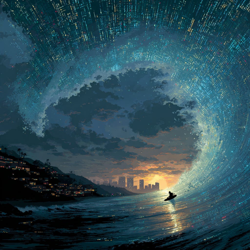 The singularity often gets summarized as this wave you see for a moment on the horizon, and then before you know it, it’s washing over and you find yourself either surfing along or being swept away in the undertow.